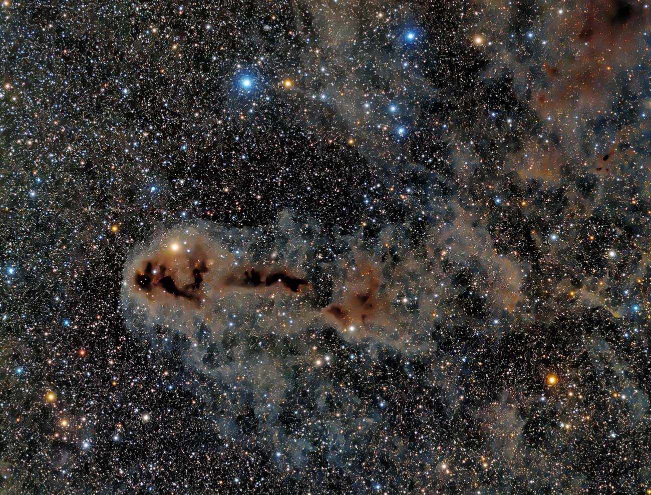 LBN 558, containing dark nebulae LDN-1250/1 to the left and LDN-1246 to the right and is situated in the northern part of Cepheus known as the Cepheus flare region. There are also two PGC spiral galaxies seen in this image. PGC 69472 is to the left sitting at the nose of LBN 558, and PGC 166755 is just left of center. LBN 558 ranks at 6 on the LBN brightness scale, as dim as they get. . . |