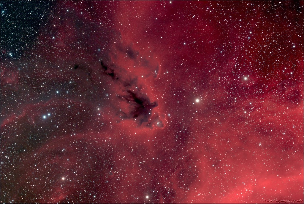 LDN 1622, The Boogie Man Nebula, is a dark molecular cloud off the northern edge of the much larger structure known as Barnard's Loop in Orion. This seldom imaged object lies just off the northern extension of Barnard's Loop in Orion. The small molecular cloud is an area of high star formation.